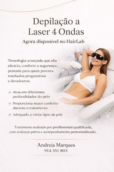 A depilação a laser 4 ondas utiliza quatro comprimentos de onda distintos que atuam em simultâneo. Esta combinação permite atingir o folículo piloso em diferentes profundidades, tornando o tratamento mais completo e eficiente.